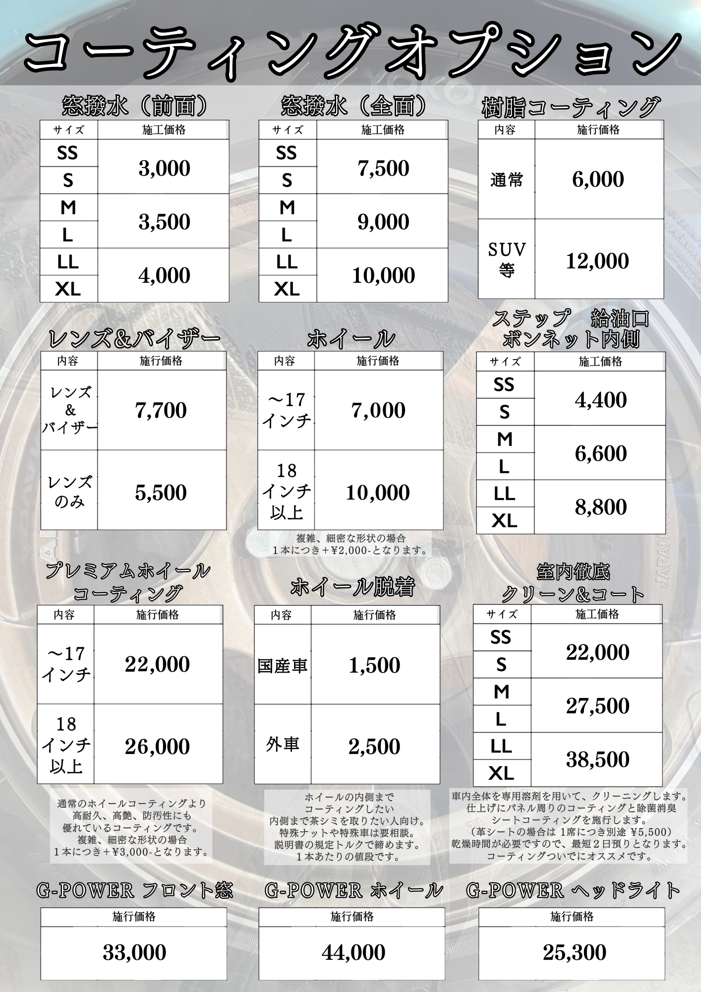 【コーティングメニュー】